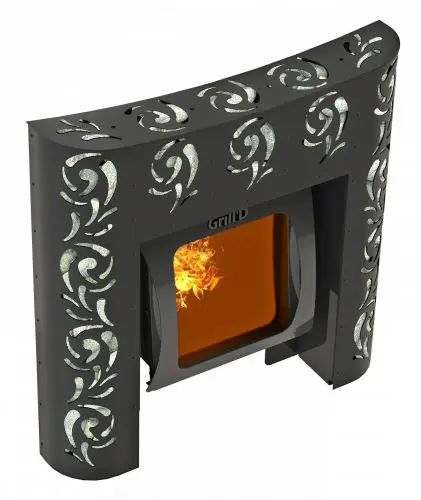 Экран декоративный предназначен для обрамления топочного канала и дверцы банных печей марки «Grill’D». Не требует дополнительной доработки конструкции печи. Незаменим при реализации дизайнерских решений в банных комплексах. По стилю гармонирует с печами. Дополняет эстетичный вид печи и помещения установки в целом.