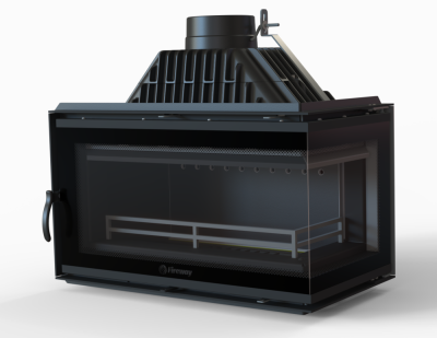 Изнутри топка защищена чугунной футеровкой по задней стенке и зубом, на дне размещена колосниковая решетка. В нижней части топки, за общей дверцей размещен выносной ящик для золы. Прибор оснащен съемным вертикальным ограждением (гребнем), являющимся ограничителем дров в топке. Каминная топка может подключаться к дымоходу с только верхней стороны.