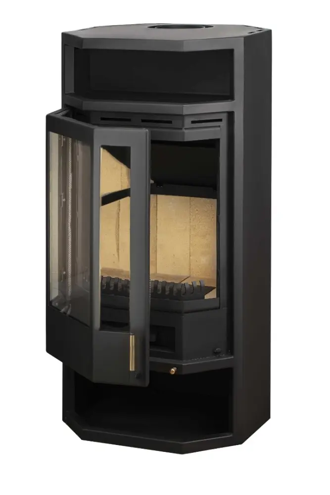 Печь-камин “Рейн” имеет неглубокую, но достаточно высокую топку, которая с легкостью вмещает поленья длиной до 60 см, установленные вертикально. Оригинальная форма топочной камеры, отделанной вермикулитовыми плитами, позволяет добиваться высокой температуры, таким образом повышается теплоотдача печи и ее КПД. В режиме тления прибор работает до пяти часов, сохраняя в помещении комфортную температуру и не расходуя дополнительное топливо.