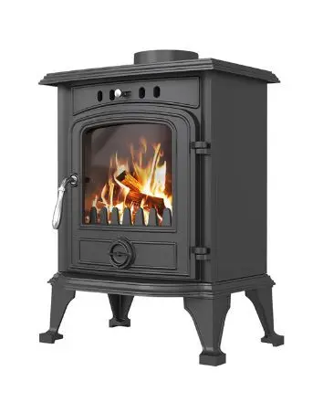 Над дверцей печи-камина расположена система чистое стекло, которая помогает оставаться стеклу чистым. В нижней части дверцы расположена  ручка для регулировки подачи воздуха в колосниковую зону.